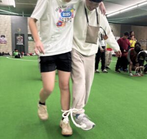 *スタッフとペアで二人三脚。